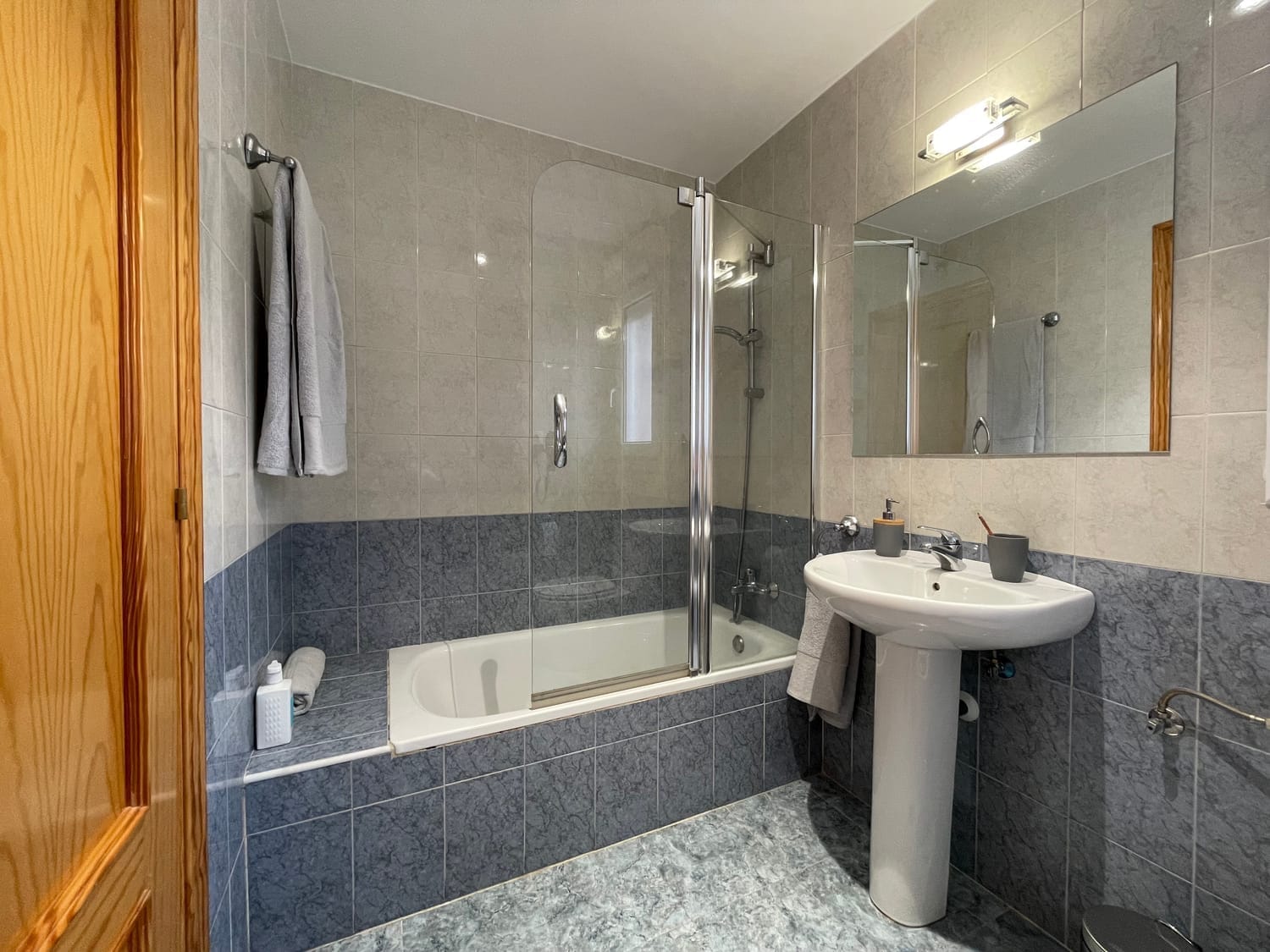 Tres baños completos, prácticos y funcionales para grupos y familias.